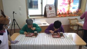 2025.11.27 / みさかえの園めぐみの家 四季の行事(園内喫茶) 11月26日に園内喫茶を行いました! 題して”めぐみCOFFEE’♪☕ 🍰職員がホールスタッフとなり、入り口でケーキと飲み物の販売を行いました🍰 利用者の皆さんは、喫茶店の雰囲気を味わいながら楽しく過ごされたようです。 前の記事 四季の行事(ハロウィン) 次の記事