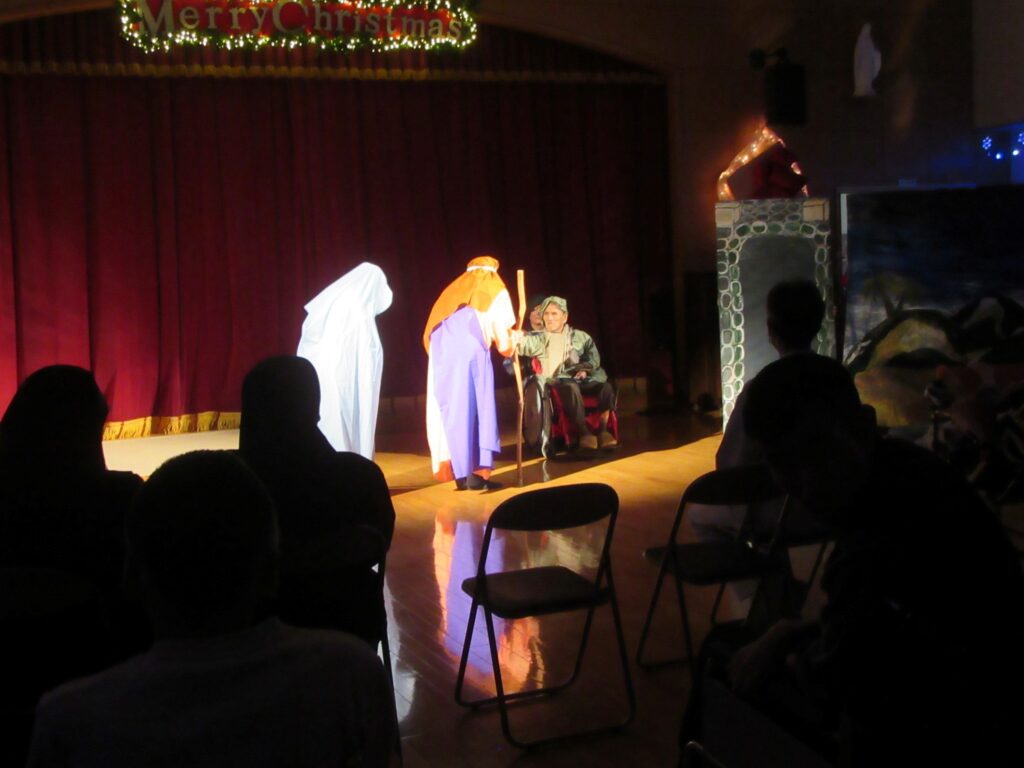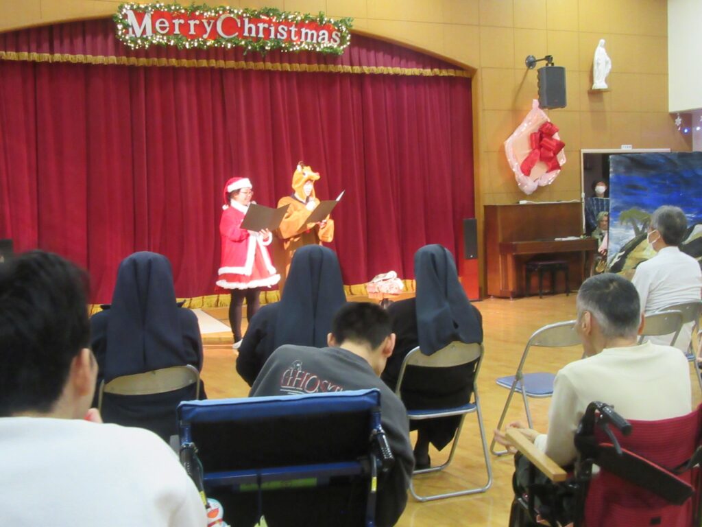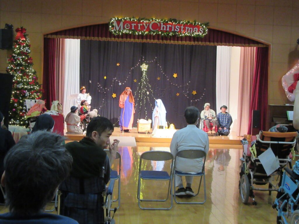 12月17日、クリスマス会行われました。今年も、利用者さんと職員との聖劇・支援室のパフォーマンスがメインとなりました。