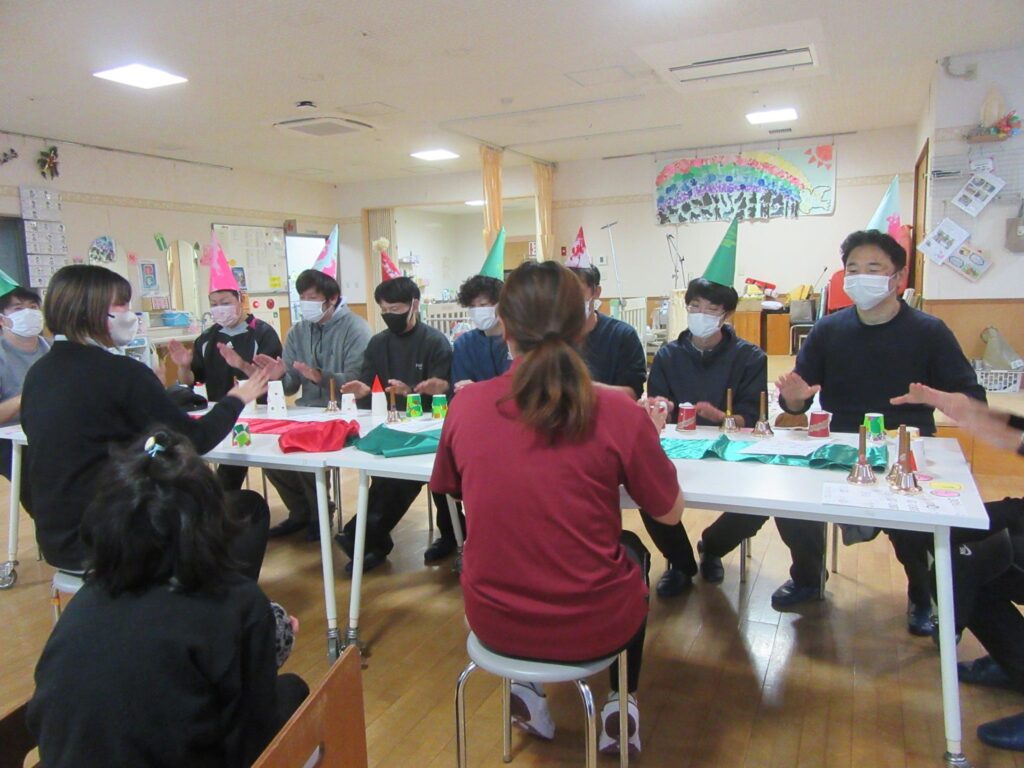 児童発達支援センターでは、数分間の練習後利用者様に、リズム遊びと、ハンドベルを披露していただきました!即席とは思えない出来に利用者の皆様、目が離せない様子でした!