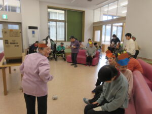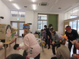 2026.02.27 / みさかえの園めぐみの家 四季の行事(豆まき) 2月25日に豆まき行事を行いました👹 『鬼は外!福は内!』という元気な掛け声とともに、皆で作った新聞紙の豆を投げ、 見事に鬼を退散させることができました! << お面を付けてバスハイクへ 前の記事 諫早吹奏楽団慰問 11月30日(日) 次の記事 四季の行事(ひなまつり)